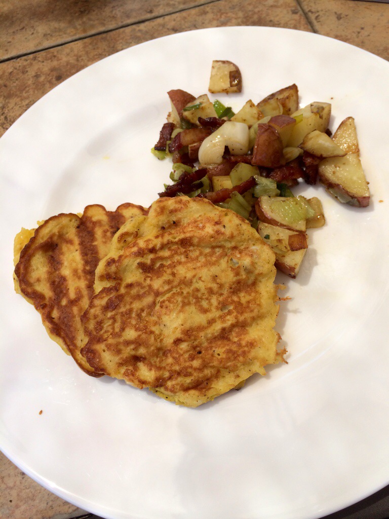 Back to my Pancakes…I made this up and it turned out delicious so I hope you’ll try it. You could also use grated Zucchini.