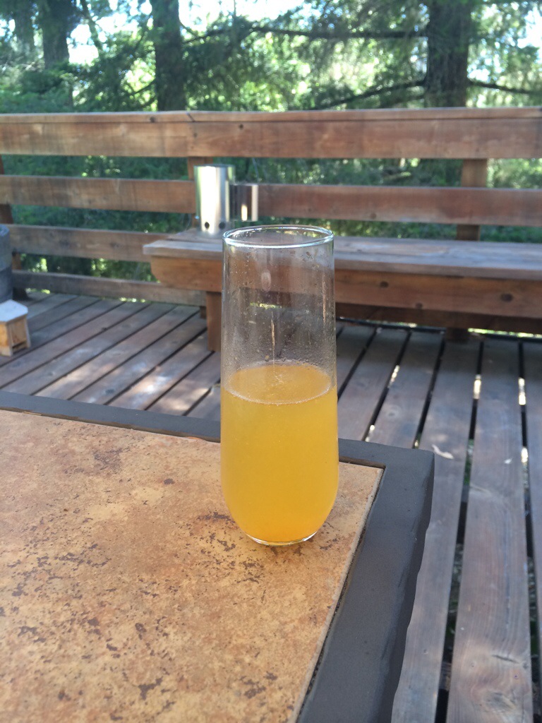 Pour some chilled Champagne or Sparkling Wine into a glass and add about 1 Tablespoon of puree. So delicious!