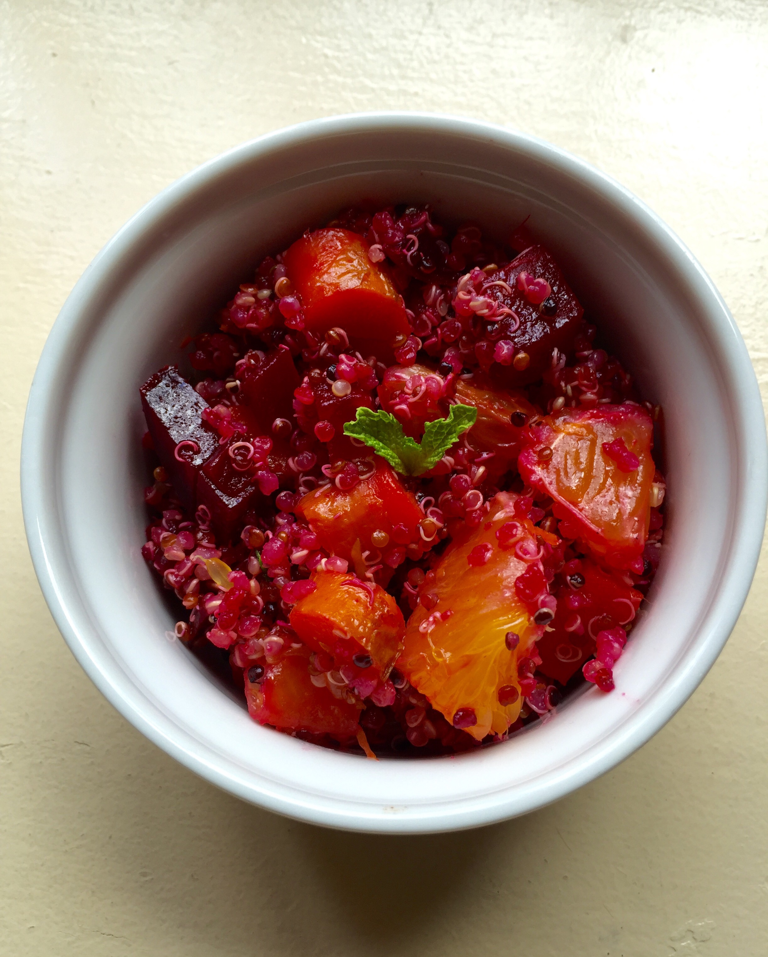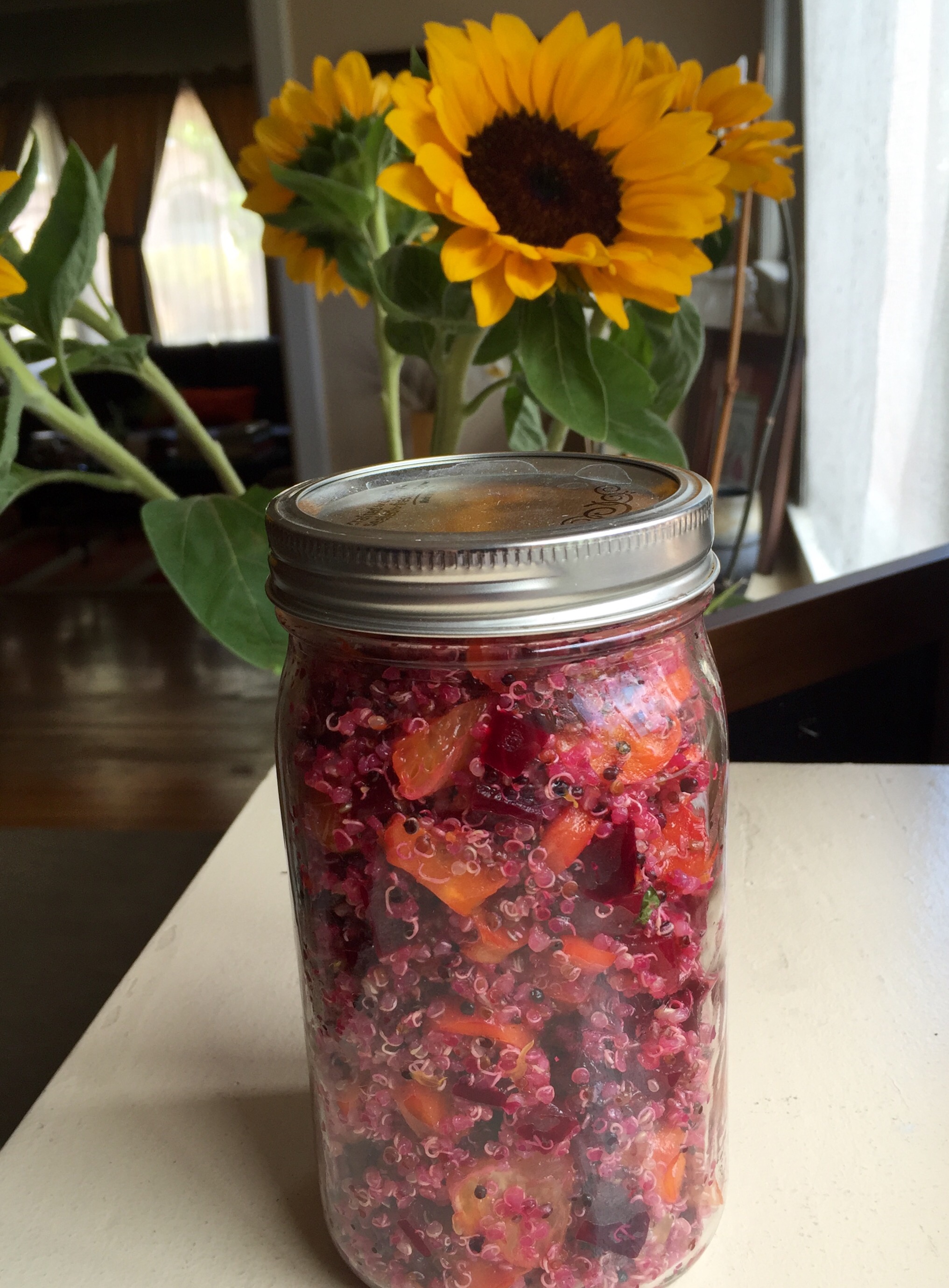 While the veggies are roasting, cook 1 cup of Quinoa. Cool before adding to the bowl.